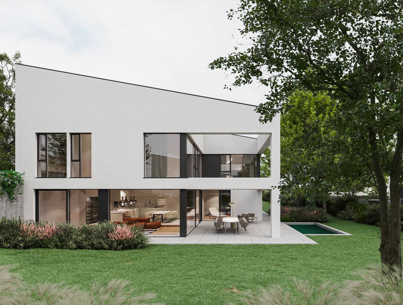 Najděte svůj nový domov v moderní dvoupodlažní vile s čistými liniemi a vysokým standardem materiálů a technologií. Velkorysá obytná plocha 404 m2 nabídne novým majitelům dostatek prostoru a chytrá technologická řešení. Vila s bazénem stojí na zahradě o celkové výměře 1 027 m 2 , kde budete rádi trávit čas s rodinou či přáteli. Umístění v dostatečné vzdálenosti od sousedních parcel zajišťuje soukromí, kterému také napomáhá orientace většiny prosklených ploch směrem do zahrady. Při vstupu se nachází prostorné zádveří, na které navazuje široká chodba včetně schodiště do druhého patra. Dominantou spodního patra je otevřený obývací pokoj propojený s jídelnou a kuchyňským koutem s moderním ostrůvkem a barovým sezením.